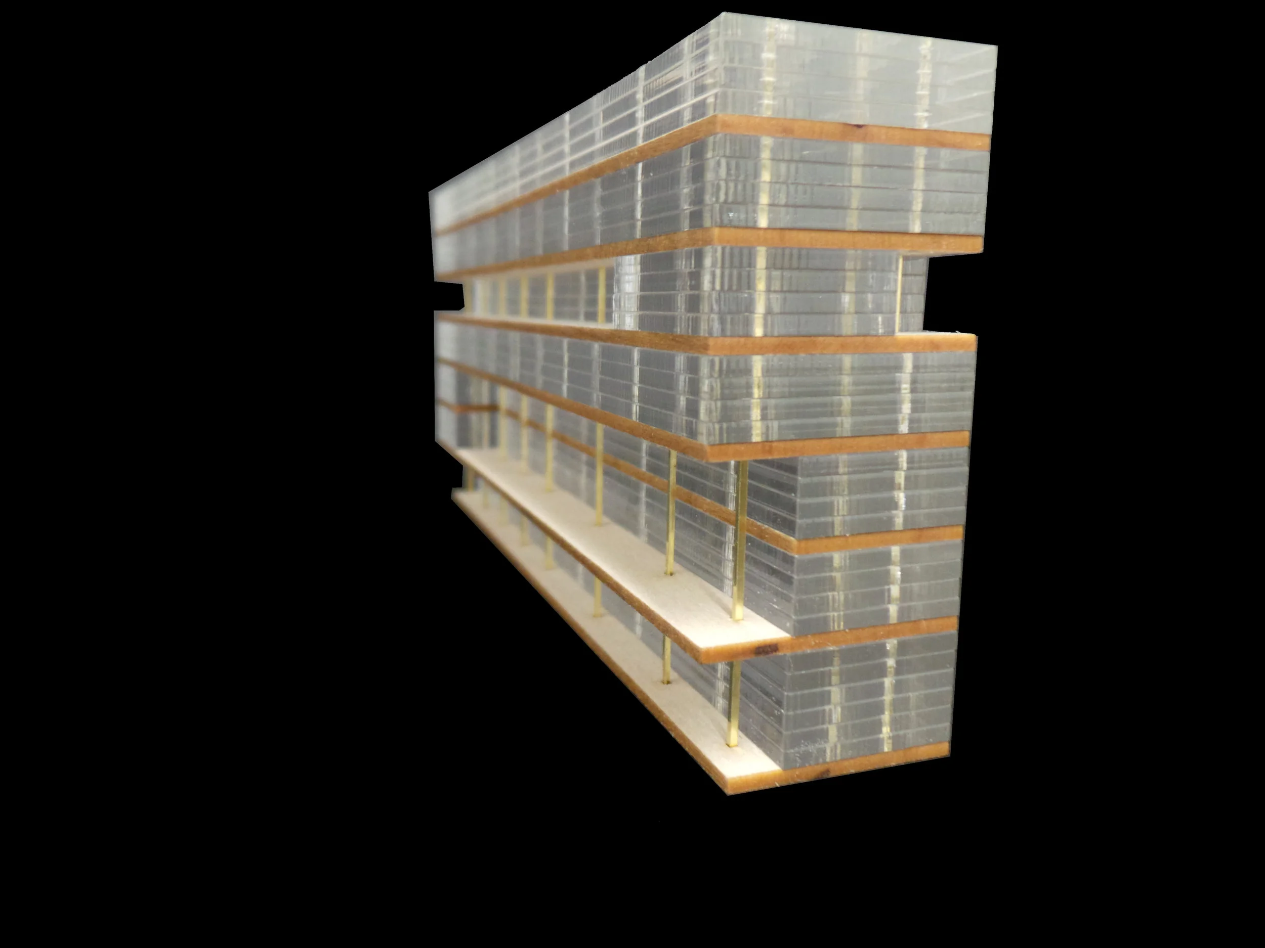 Based in Chicago, five grids were overlaid onto the site as well in elevation, allowing me to create a small residential building with 2 different required room sizes. The sizes were predetermined at 500 square feet and 1000 square feet. The two room sizes gave me the flexibility to move them around the grid to create different patterns though the facade for different clientele by using a prefabricated modular system. This project contains all hand drawings with minimal digital work.